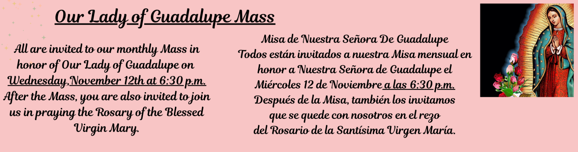 Rosario y Misa en Honor a Nuestra Señora de Guadalupe